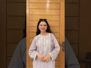 Give yourself a stunning look with this incredible light purple outfit, consisting pretty embroidery on neck,sleeves & lace detailing made from lawn.