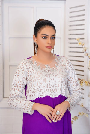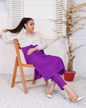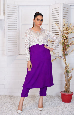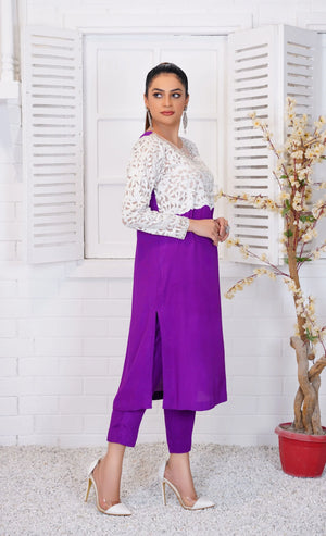 An elegant shirt in grip georgette, with a white tone signifying prosperity to every woman who aspires to believe in herself. The applique work on the bodice is an interesting and attractive detail. Pair with matching pants to complete the look.