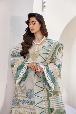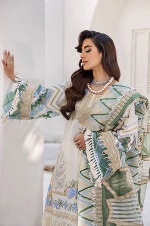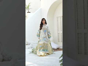 Embrace the desert’s mystique with this luxurious fabric with “Allure of Sands”. This exquisite fabric beckons with the warmth of desert sands and the allure of distant horizons. With embroidered neckline, panels and back its Embroidered Sleeves and sleeves border evoke a sense of luxury and sophistication. Whether its Embroidered Sleeves and sleeves border or 2 coloured Embroidered organza dupatta flowing layers or tailored to perfection, this fabric transforms into a masterpiece. Embrace the essence of refinement with “Allure of Sands” and step into a world of timeless elegance.