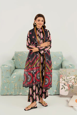 Additional Description: 3-piece blended silk pret featuring digital print, soft drape, and tailored fit for chic everyday style, paired with a poly manar dupatta.