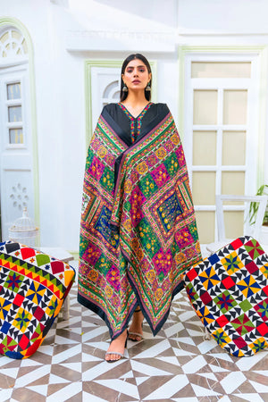 - Fabric / Dupatta: This Multi Shade Printing Silk dupatta and Mirror Embellishments adorned on the Dupatta will make you marvel at Our Pakistani cultural artisans’ craftsmanship.