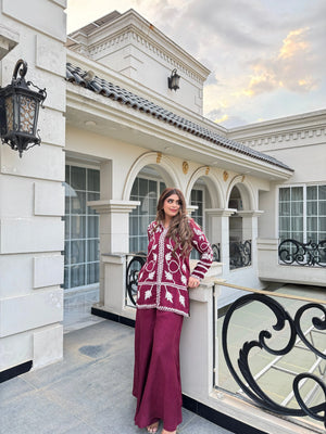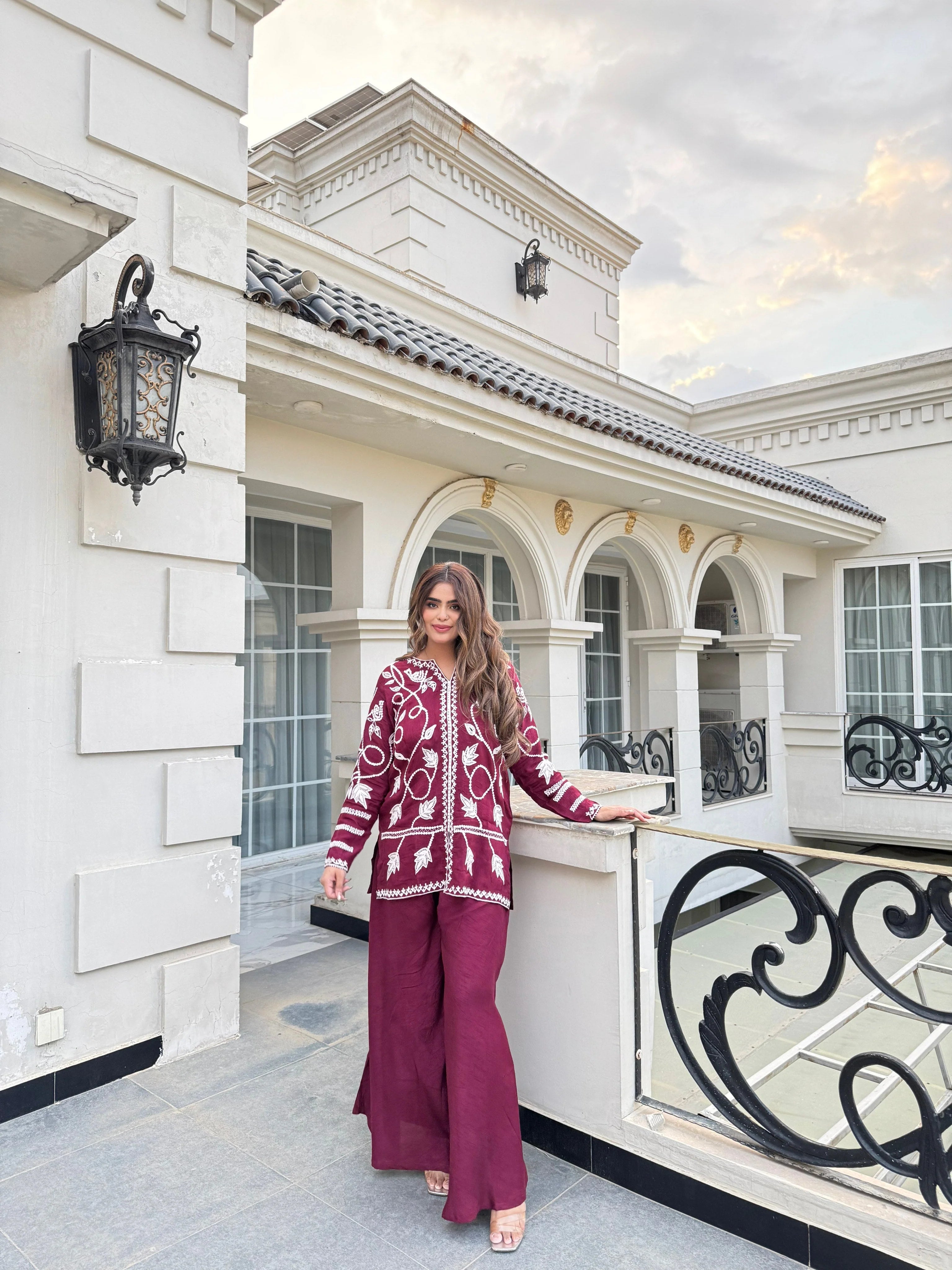 Beautiful fusion of embroidery on shirt shirt with Cullotes pants 🤍