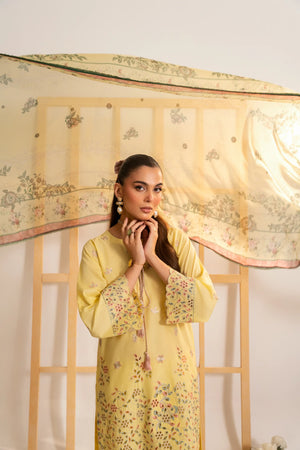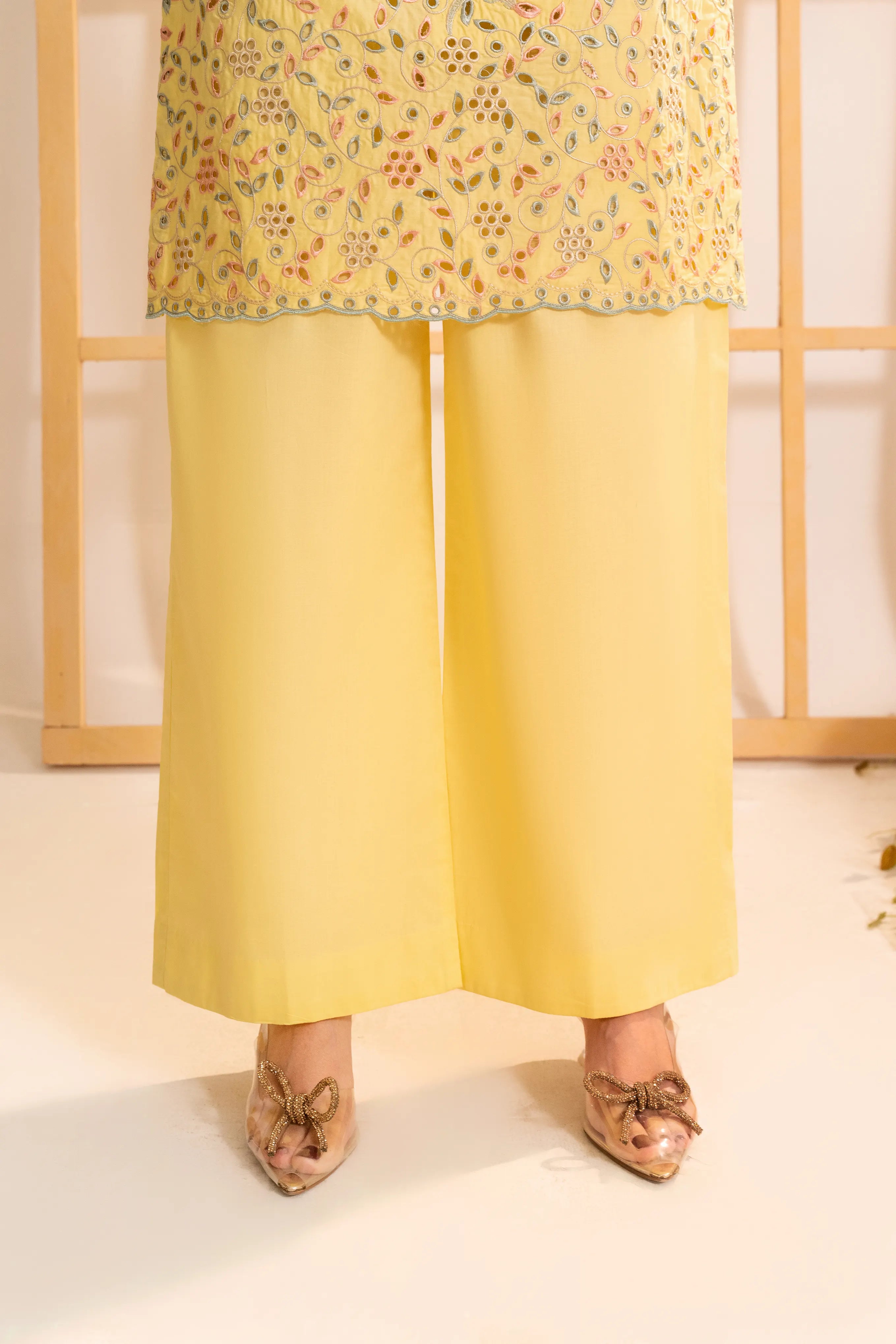 Dyed and fully embroidered cambric shirt with embroidered sleeves