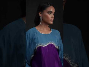 The Kaftan is a striking statement piece defined by its bold color block palette, a vibrant blend of magenta, blue, and lime that feels both fresh and timeless. Crafted in tussle silk, the kaftan is adorned with unique wavy hand embroidery, making it a truly one of a kind creation. A handmade masterpiece that celebrates artistry and individuality, designed for those who want to stand out with confidence.