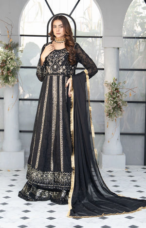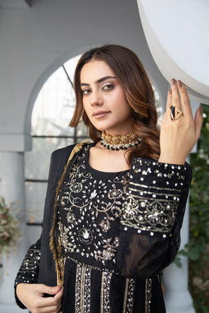 - Additional Description: There is exquisite embroidery work in vertical patterns, which exudes grace and elegance, is a marvel of craftsmanship and design. The designer's exquisite use of the zari, sitara, stone work , and sequin embroidery technique enhances this lovely dress. A gorgeous chiffon dupatta with a kiran lace border completes the ensemble. Make use of Mona Embroidery to showcase your individual style and embrace it. Note: Measurements very according to designs. Remember: Dry Clean Only.