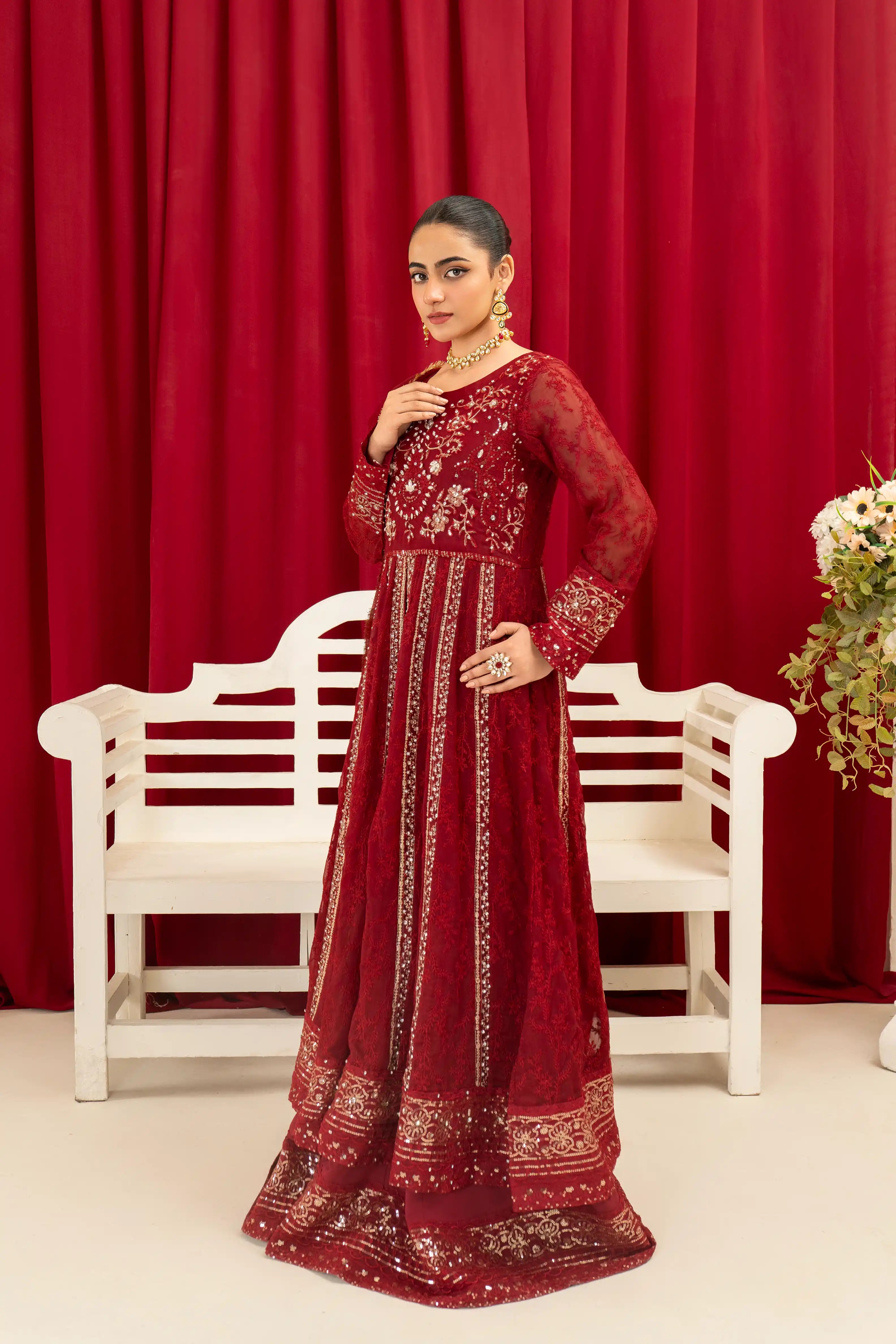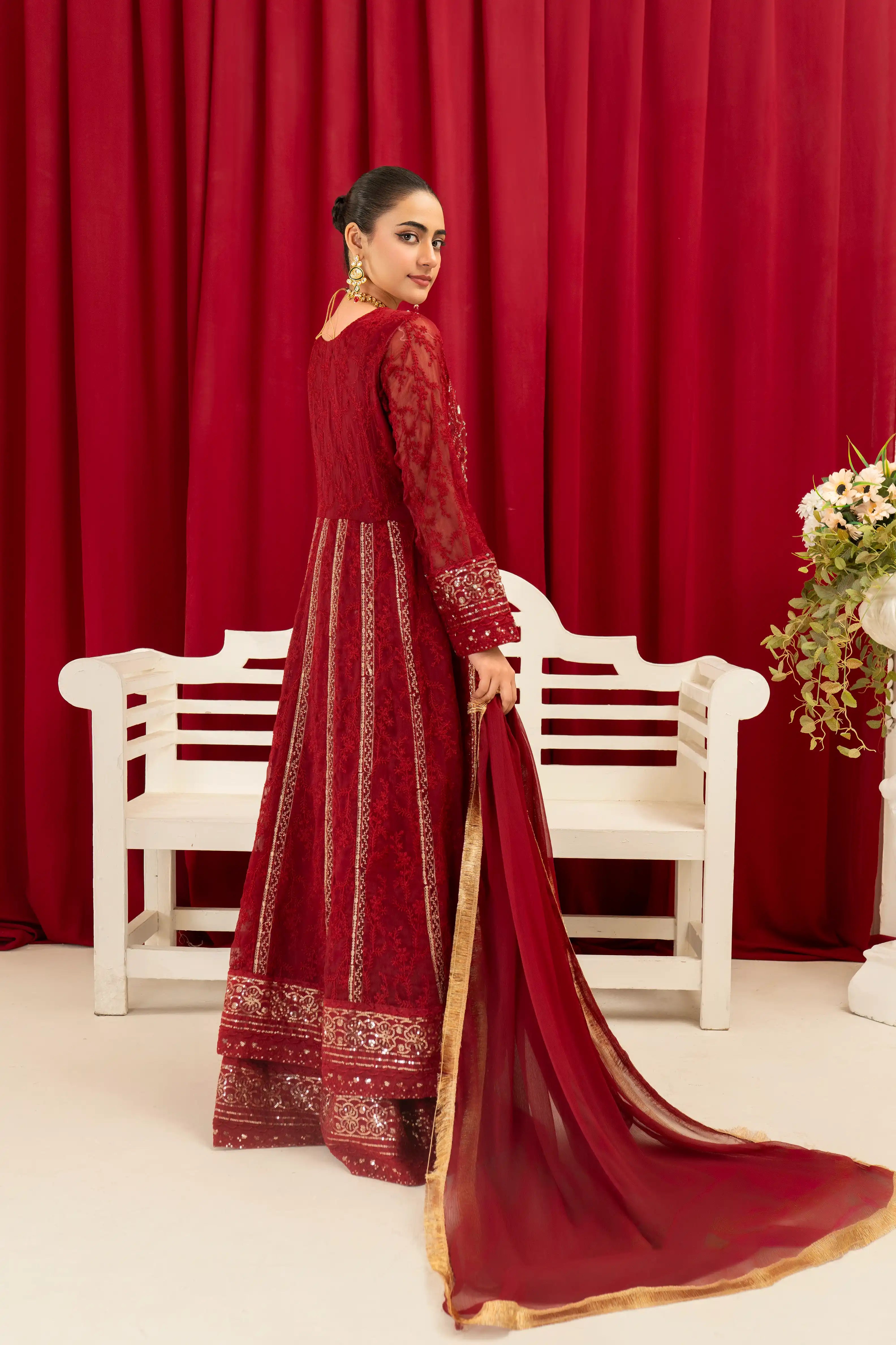 B-007-MAROON Embroidered Chiffon Pret 3Pcs