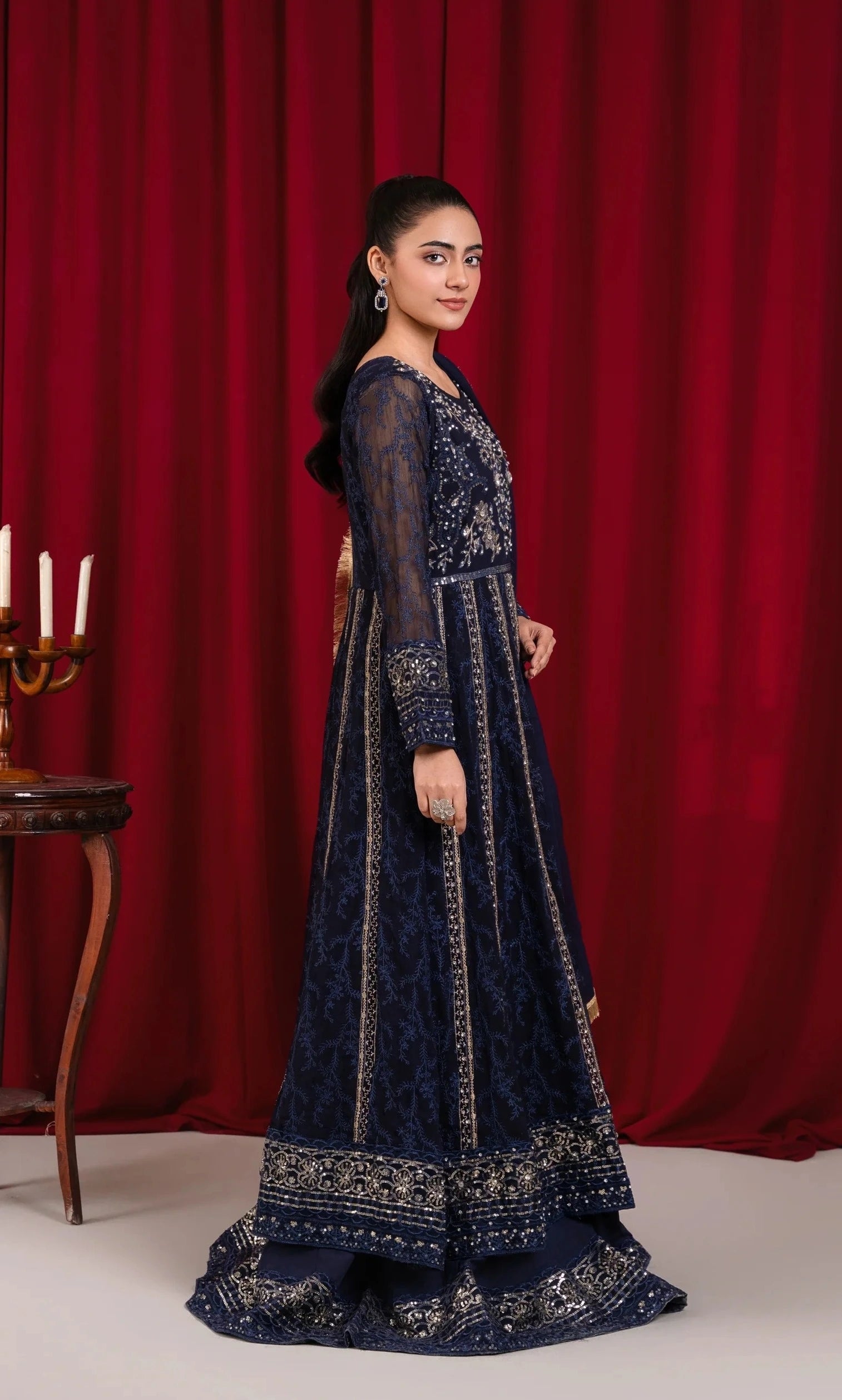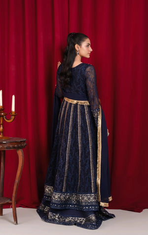 B 007-NAVY BLUE CHIFFON MAXI PRET 3PCS