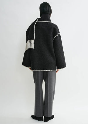 Stay cozy and stylish this winter with our black wool woven knitted coat, designed for a relaxed, loose fit. Crafted from soft, breathable knit, it provides ultimate warmth without compromising on comfort. The versatile black hue pairs effortlessly with any outfit, making it a timeless wardrobe staple. Perfect for layering, it’s your go-to for chilly days!