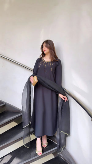 Beautiful Red Embellished hand work with sequins, stones and Swarovski on long shirt with plain pants š¤