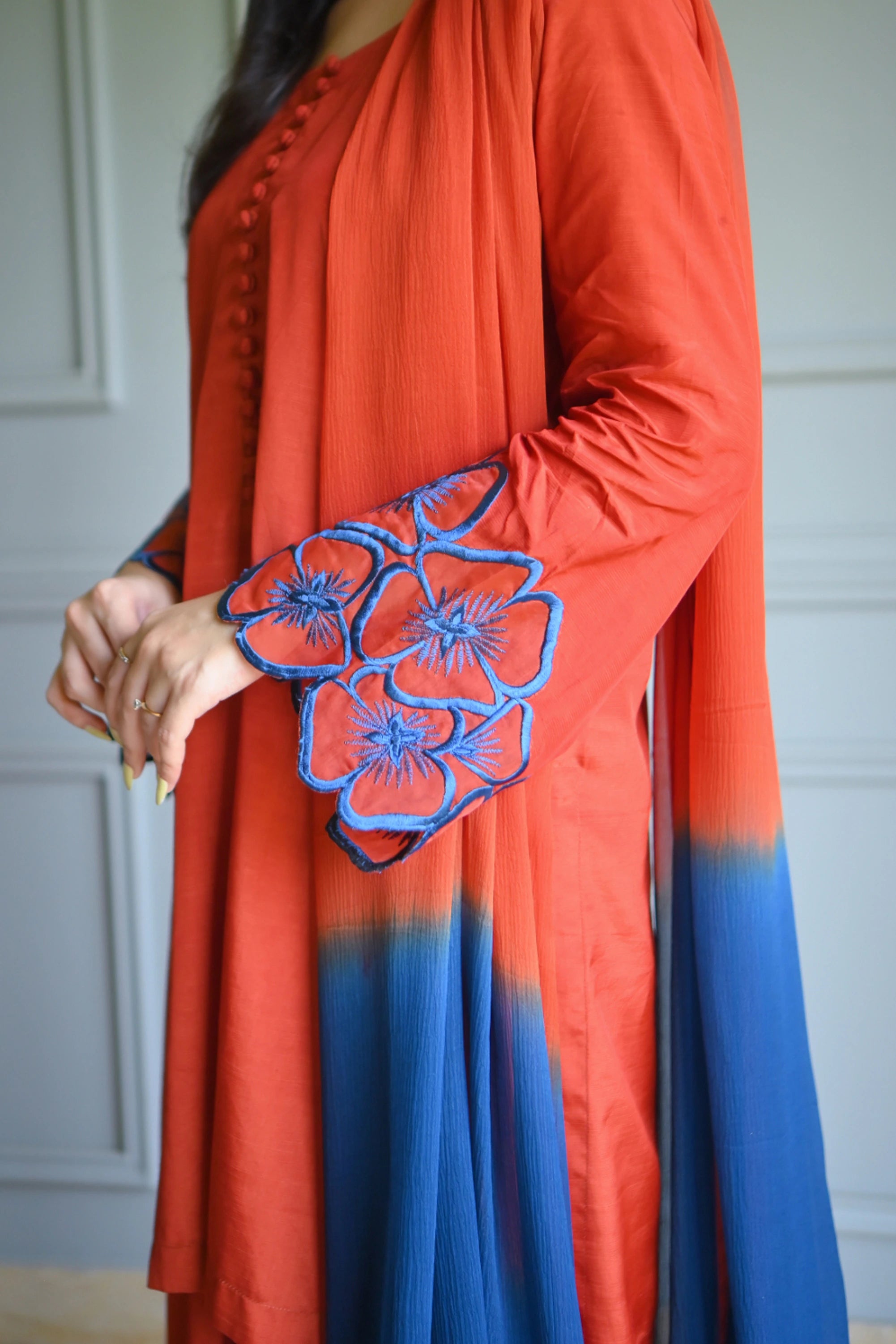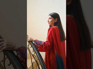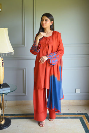 It’s a three piece dress includes embroidered shirt and shalwar along with two tone dyed chiffon dupatta.