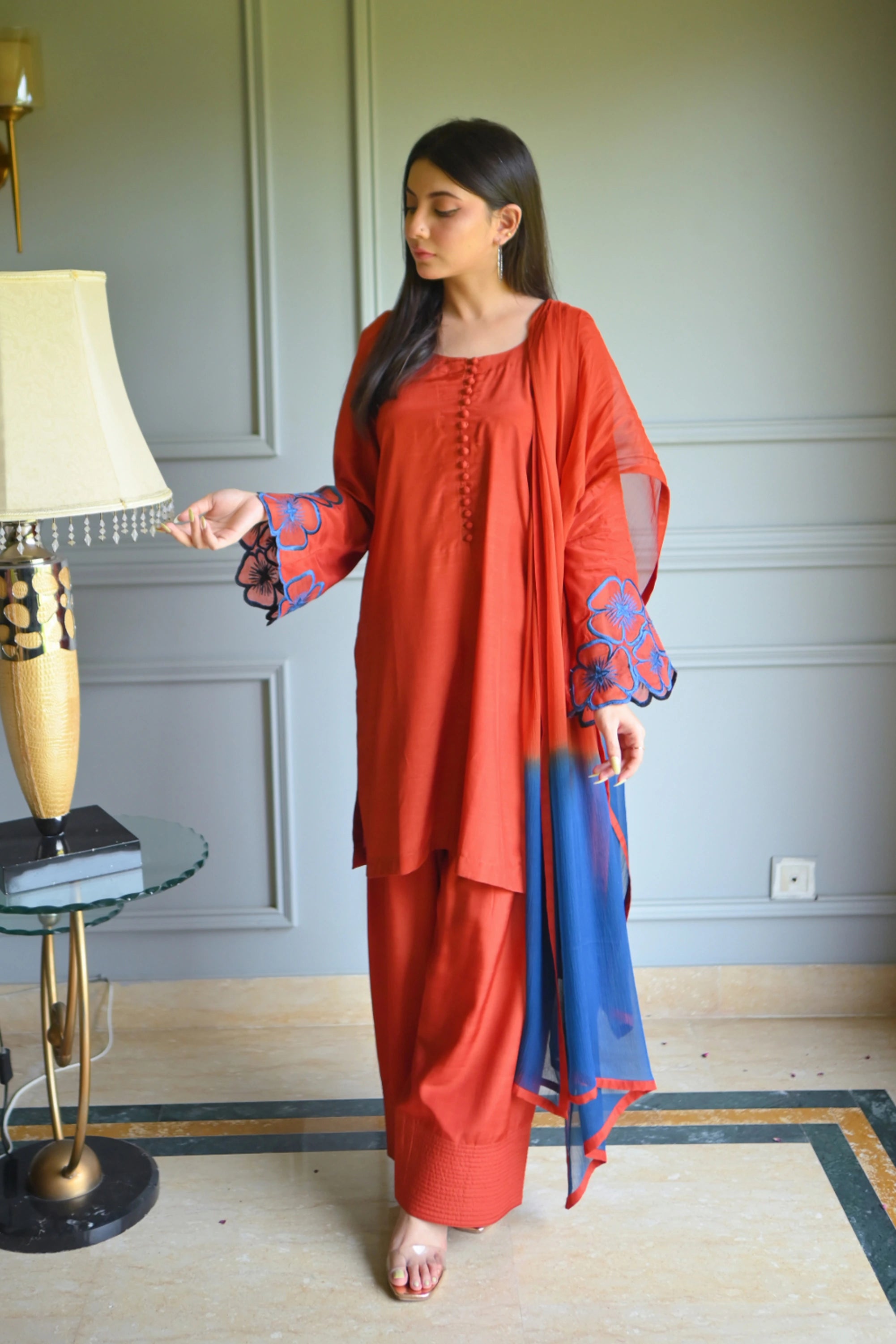 Blossom Embroidered Raw Silk Pret 3Pcs