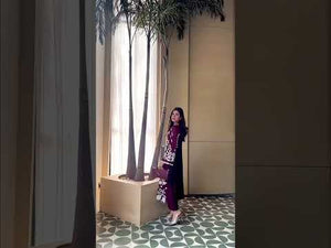 Beautiful fusion of colour, embroidery on long shirt with plain pants,