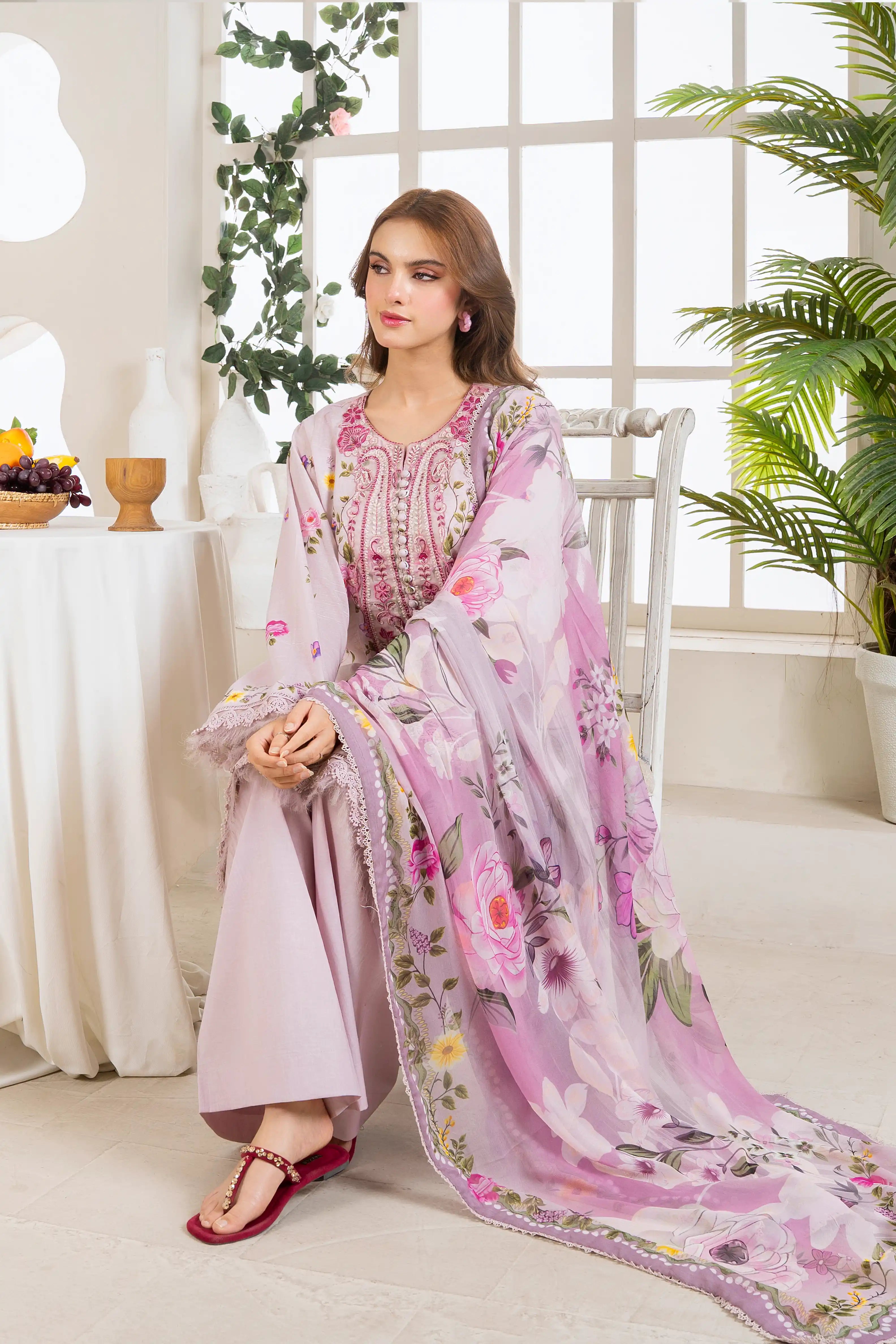 Calista Embroidered Slub Lawn 3Pcs