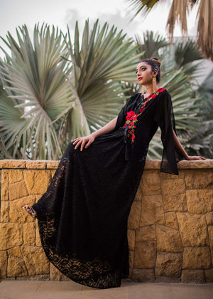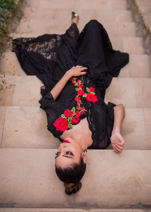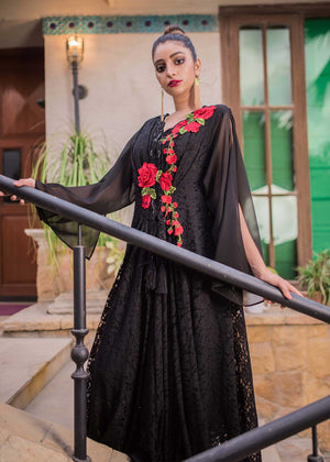 Carbon Mist - Black Net Shirt with Flared Sleeves