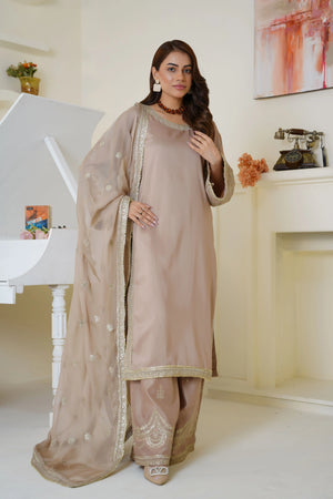 Champagne Beige Embroidered Viscose Pret 3 PCs