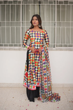 Checkered Silk Pret 3Pcs