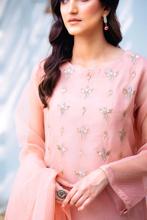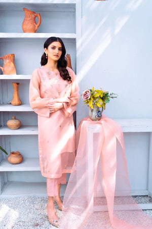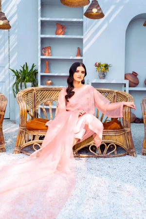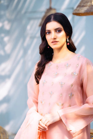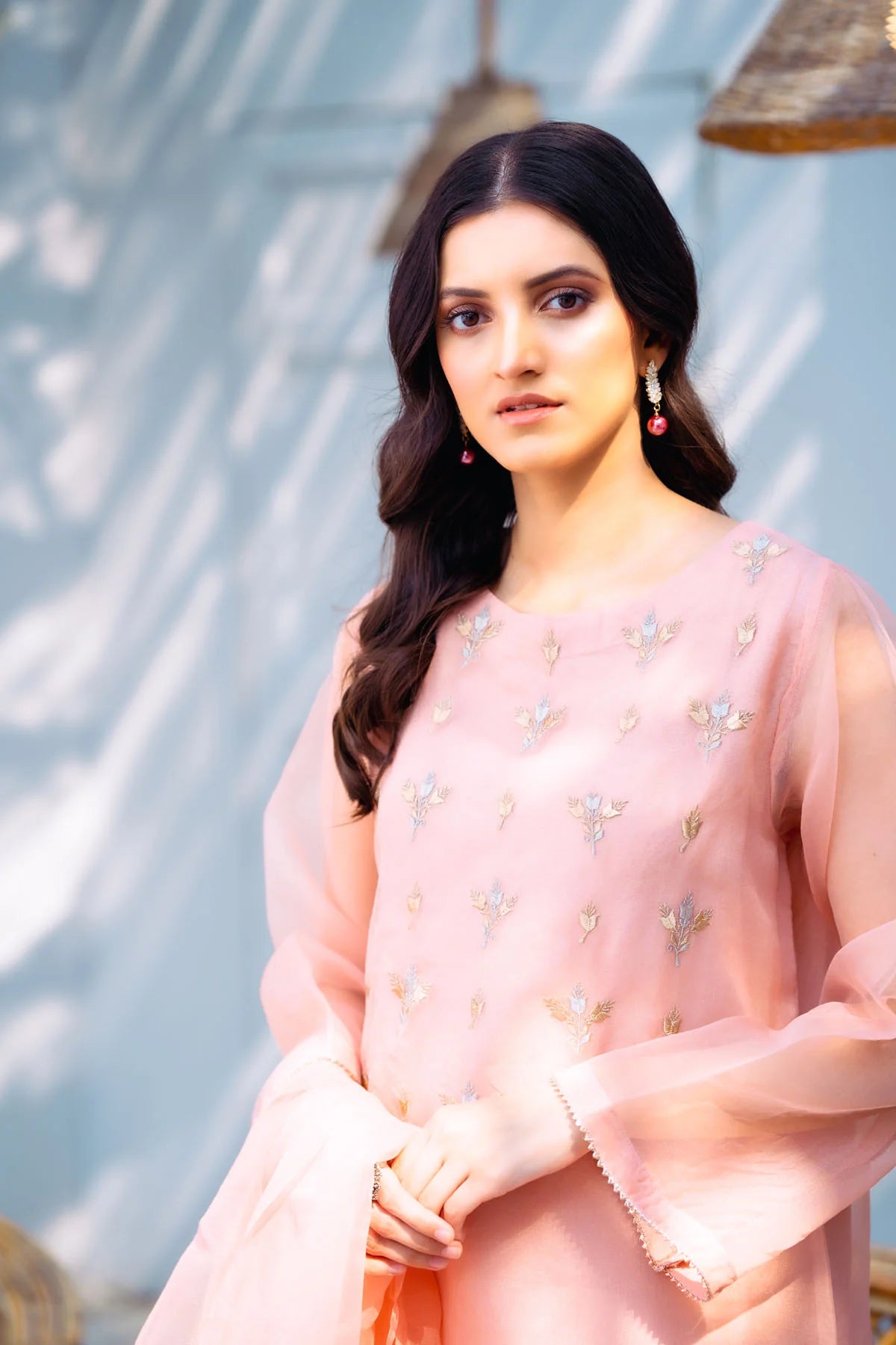 - Introducing our beautiful lemonade pink dress, a perfect blend of elegance and simplicity. This stunning dress is designed with a minimalistic approach to accentuate the beauty of its delicate fabric and intricate workmanship. The dress features a round neckline and full-length sleeves, adding a touch of sophistication and grace to the overall look.The intricate Threadwork embroidery in multi shades adds a subtle pop of colour and elevates the dress to the next level. Made from high-quality Organza fabric, this dress is comfortable and breathable, making it perfect for any occasion.The straight cut designer pattern adds a touch of modernity and elegance to the overall look. The dress comes with a matching dupatta in tissue organza with delicate gotti lace and is a perfect complement to the lemonade pink dress.