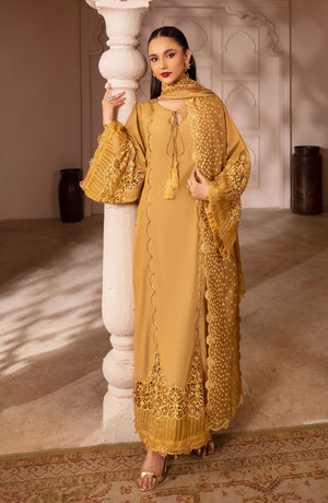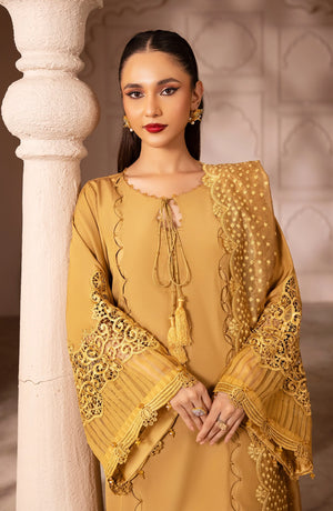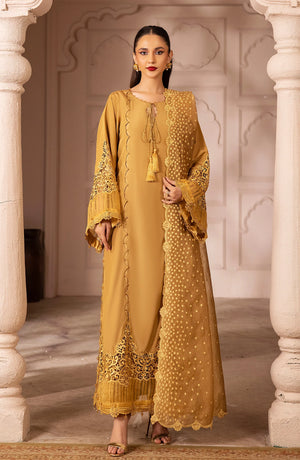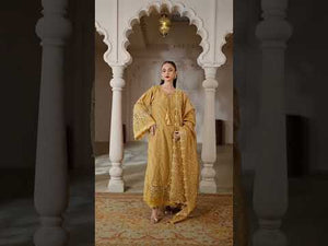 This beautiful olive-green dress is a perfect blend of elegance and tradition, ideal for formal and semi-formal occasions. The long kurta features fine details with a neat, embroidered neckline and playful tassels on the front. The wide bell-shaped sleeves are decorated with delicate embroidery and tassels, while sheer fabric inserts add a touch of grace and style. The hem of the dress is finished with lace and cut-out designs, giving it a refined look