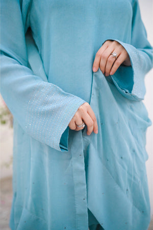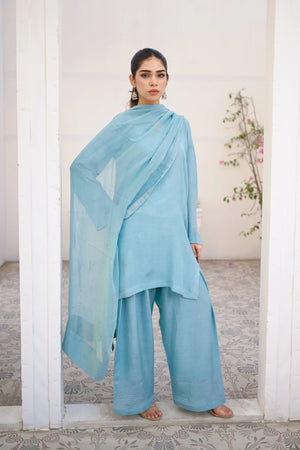 Cyan Raw Silk Pret 3Pcs