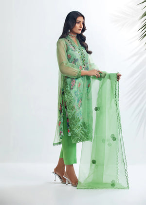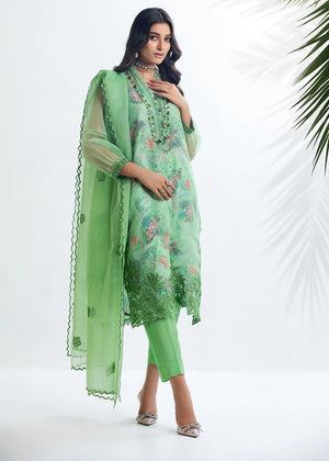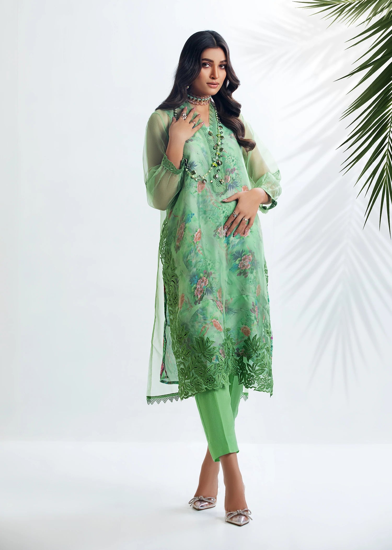 Intricate play of colors through whimsical pattern motifs and appliqué cut work are articulated with thread work over organza fabric with printed linned slip. This article is shirt only and rest can be added on. Length of shirt is 45 and Duppatta yard is 3.