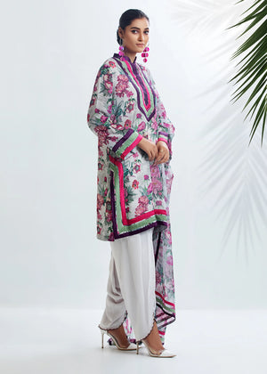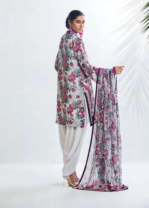 Beautiful breeze georget chiffon base with floral customised print is adding life to your fashion style. Completing this attire with lungi shalwar makes it best for daily wear. This article is 2 pieces only. The length of the shirt is 38