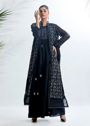 D-09 - Black Maxi Dress with Embroidered Jacket