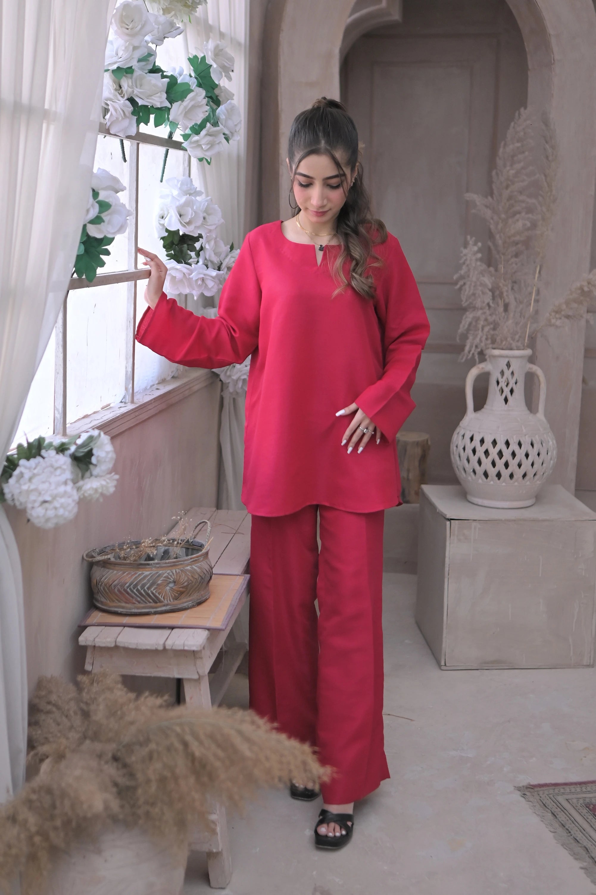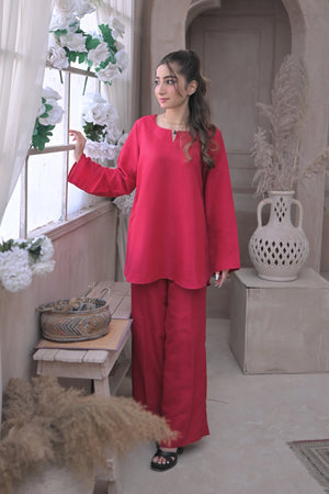 Deep Pink Raw Silk Co Ord Set