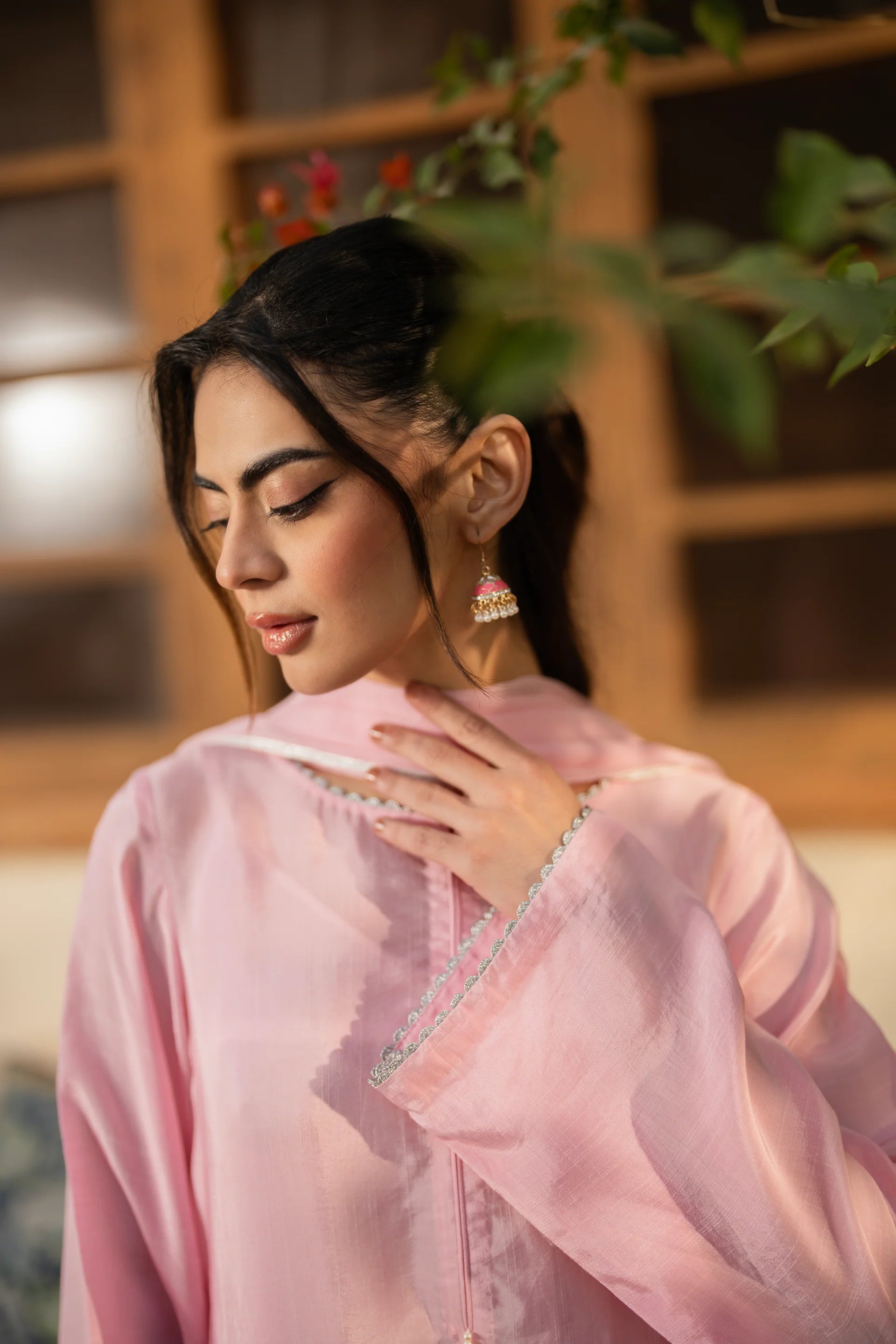 Cute pink raw silk outfit, featuring traditional adda and zari embroidery. A heart-shaped motif embellishment adds a playful yet elegant accent, making it perfect for festive or casual ethnic occasions.Complete the look with the optional chiffon dupatta for a soft, flowing finish. Comfortable, stylish, and timeless, this outfit is ideal for those who love a mix of classic ethnic charm and modern cuteness.