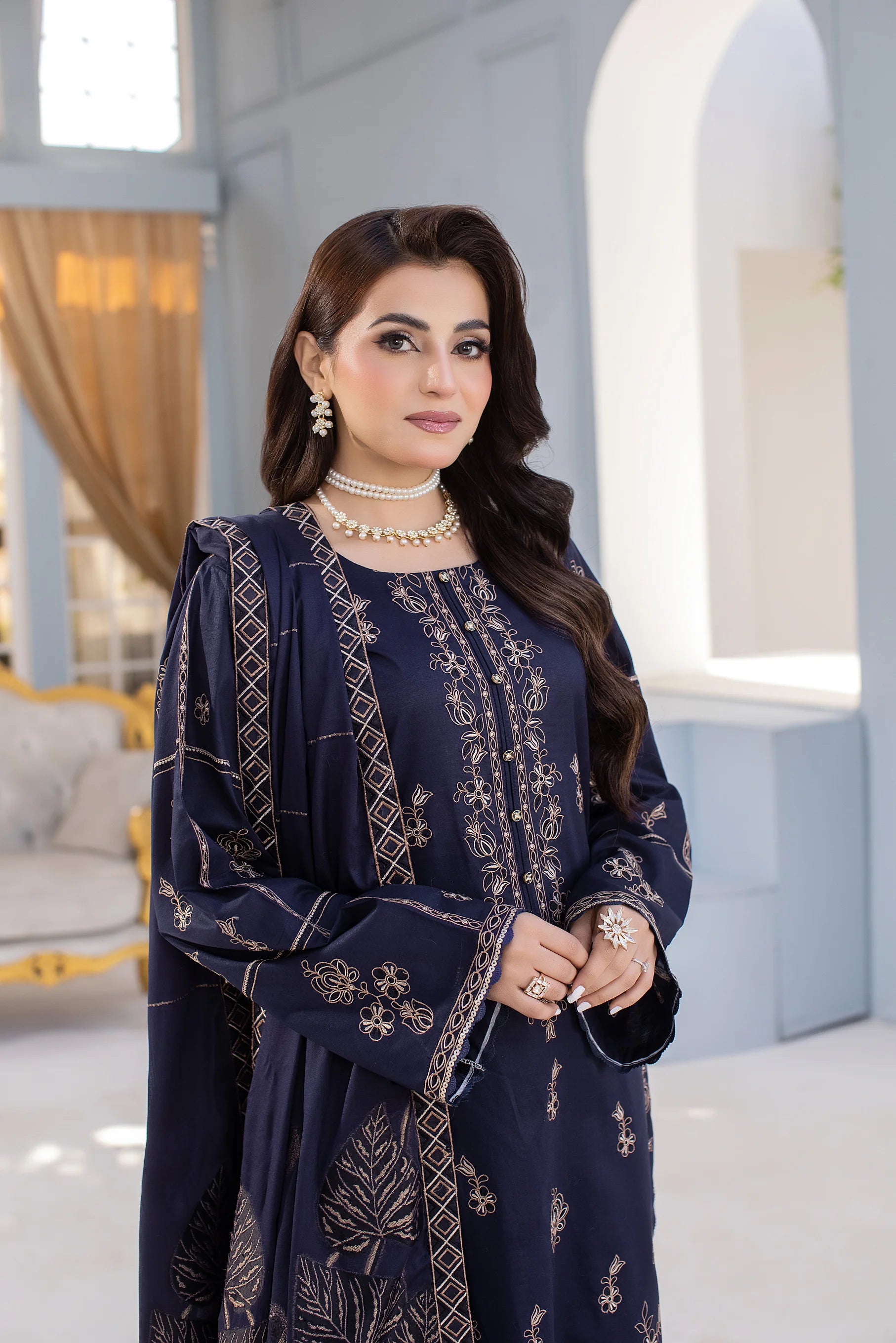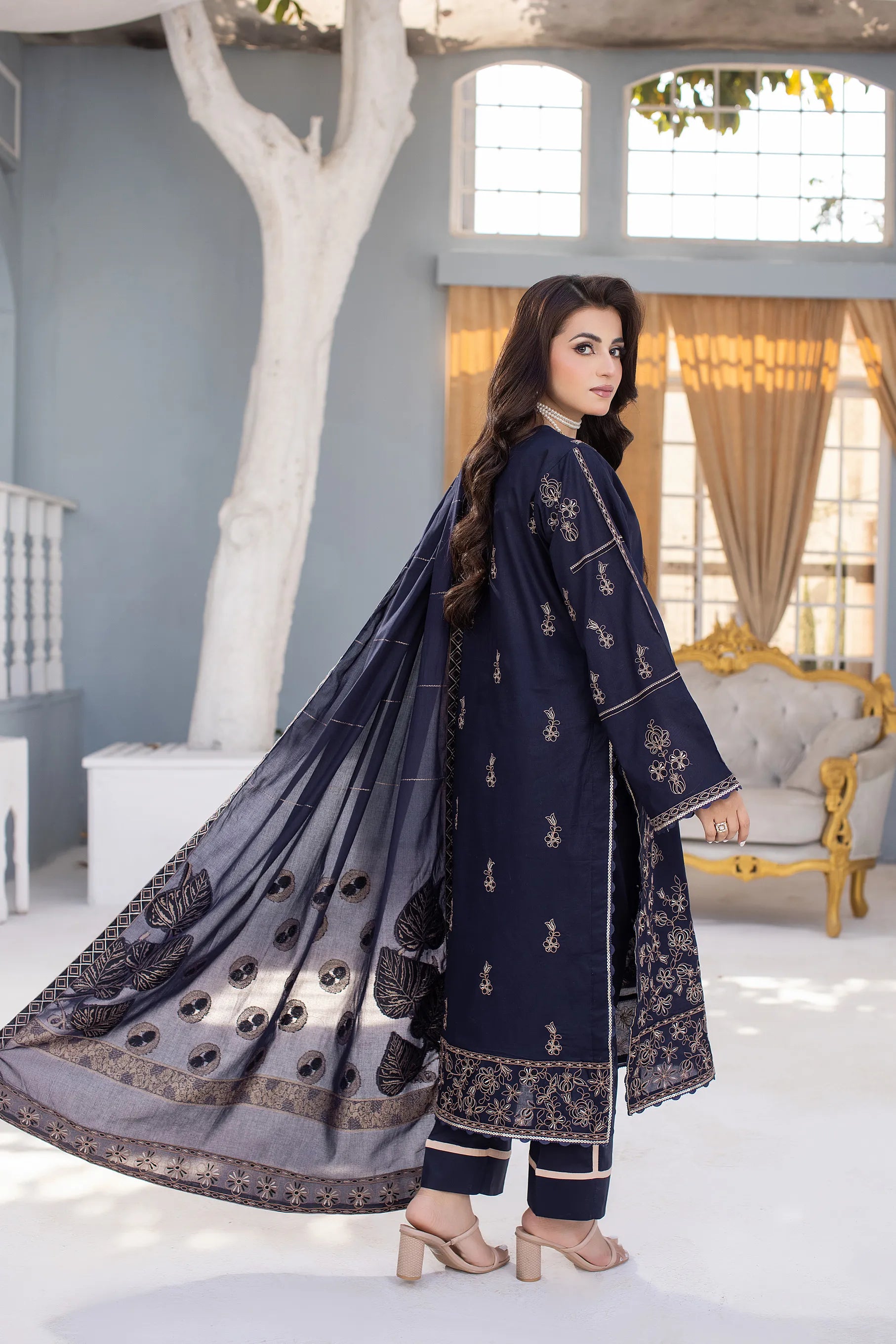 3pc Embroidered Lawn with Lawn Jacquard Dupatta & Cotton Trouser.