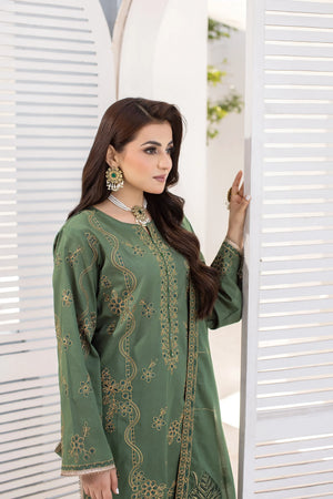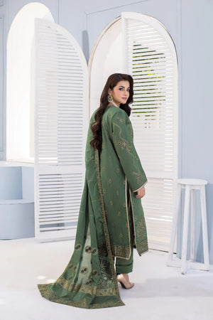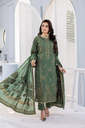 3pc Embroidered Lawn with Lawn Jacquard Dupatta & Cotton Trouser.