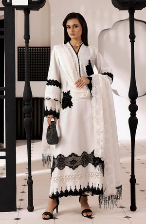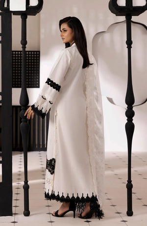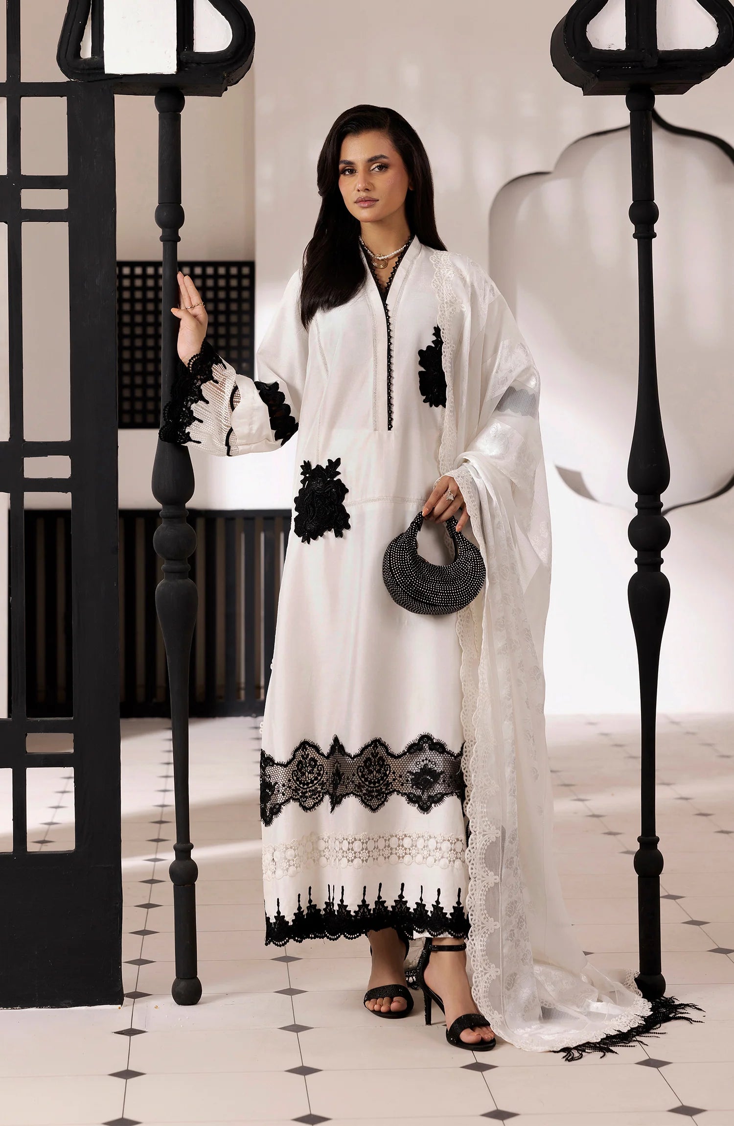 Paired with a 4-side embroidered and Dual-Weave Shiffon Jamawar dupatta, this ensemble