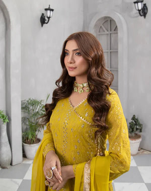 DRESS 099 MUSTARD CHIFFON PRET 3 PCs