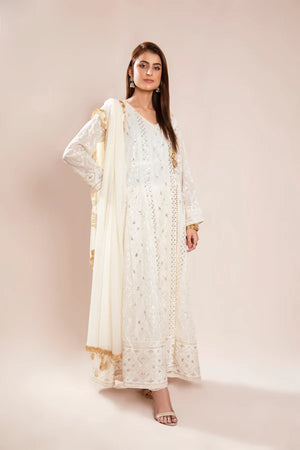 DRESS 099 WHITE CHIFFON PRET 3 PCs