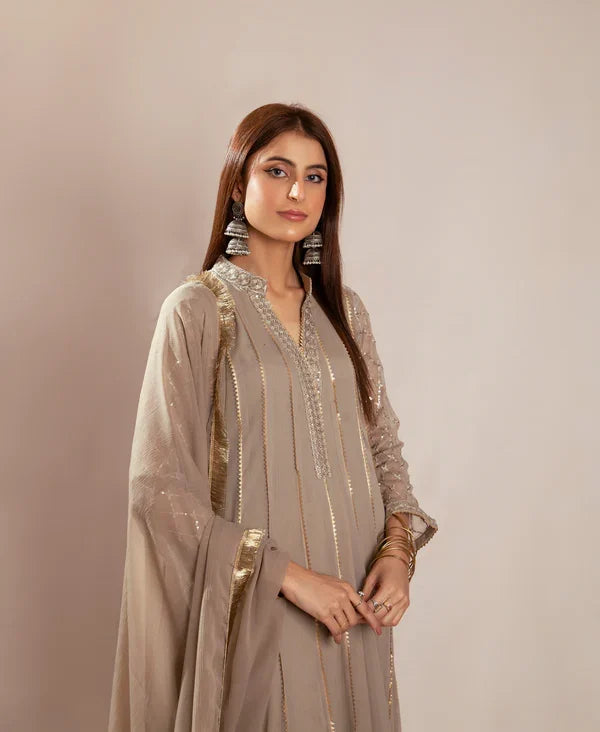 DRESS 106 CAMEL CHIFFON PRET 3 PCs