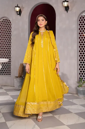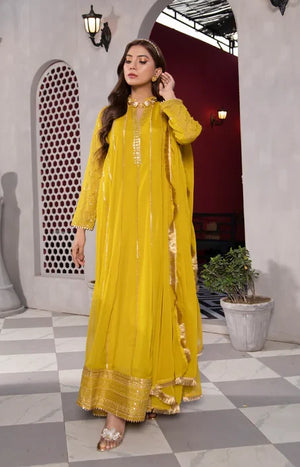 DRESS 106 MUSTARD CHIFFON PRET 3 PCs