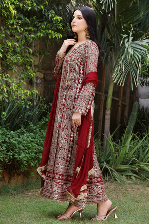 DRESS 122-DIVINE- MEHROON CHIFFON PRET 3 PCs