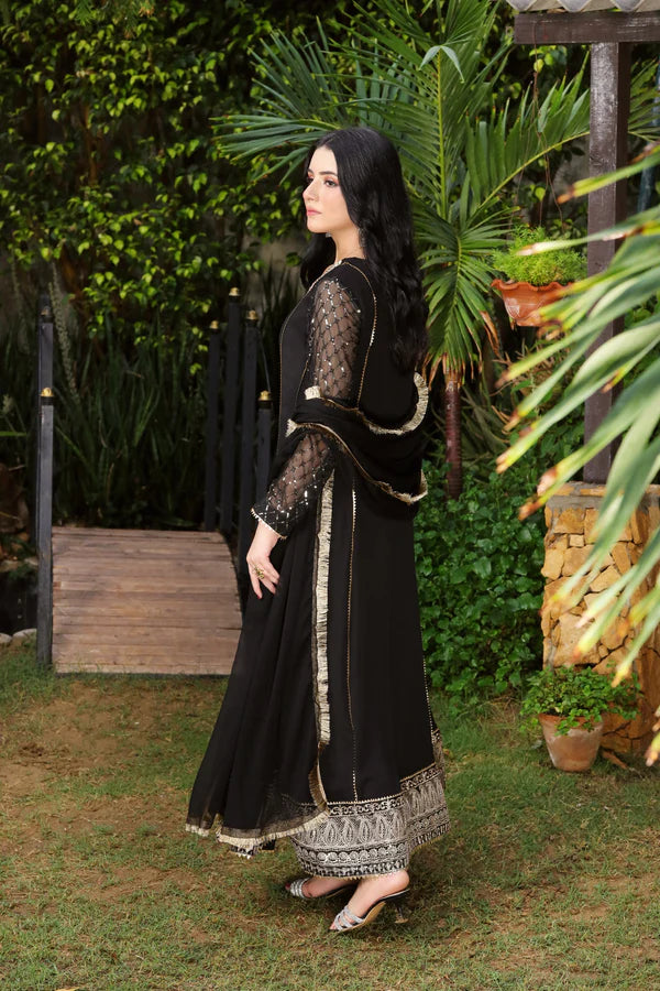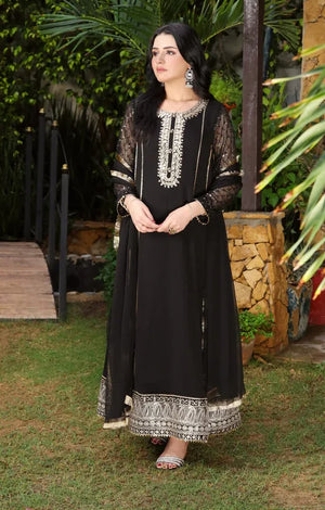 DRESS 123 BLACK CHIFFON PRET 3 PCs