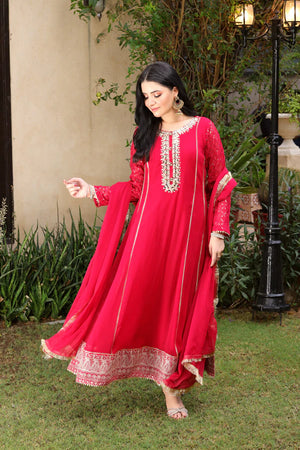- Shirt with attached shameez & malai crap Pant with Chiffon Dupatta