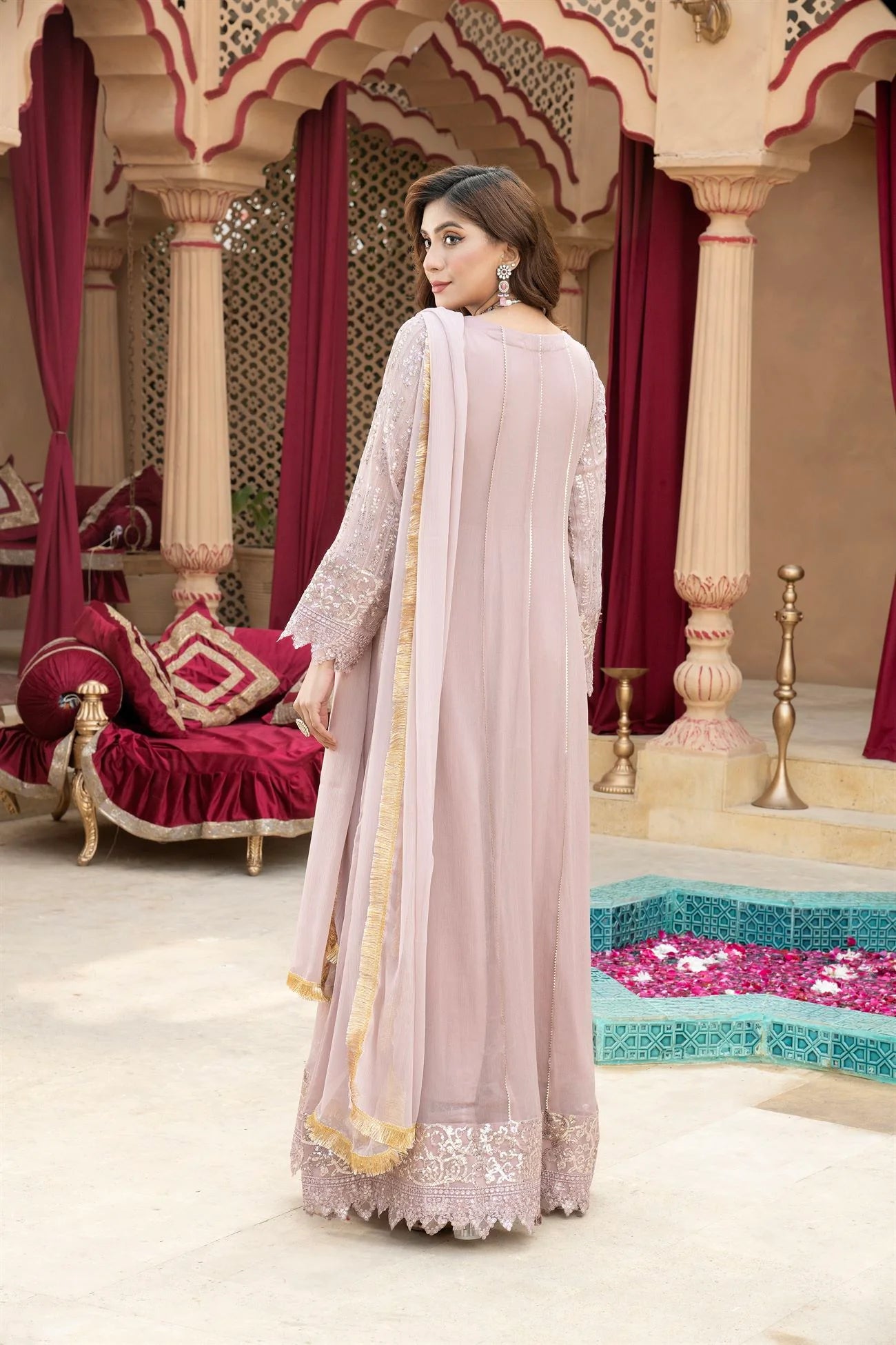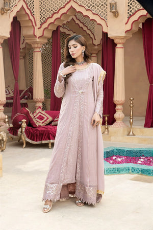 - There is exquisite embroidery work in vertical patterns, which exudes grace and elegance, is a marvel of craftsmanship and design. The designer’s exquisite use of the tilla , sitara, embalished , and sequin embroidery technique enhances this lovely dress. A gorgeous chiffon dupatta with a kiran lace border completes the ensemble. Make use of Mona Embroidery to showcase your individual style and embrace it.