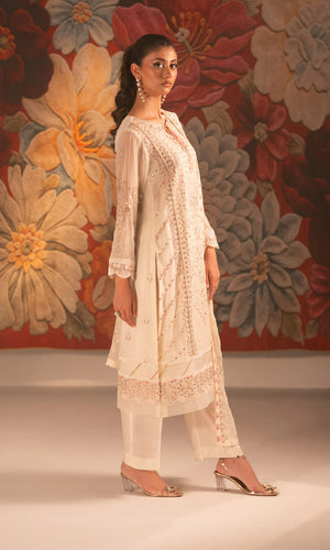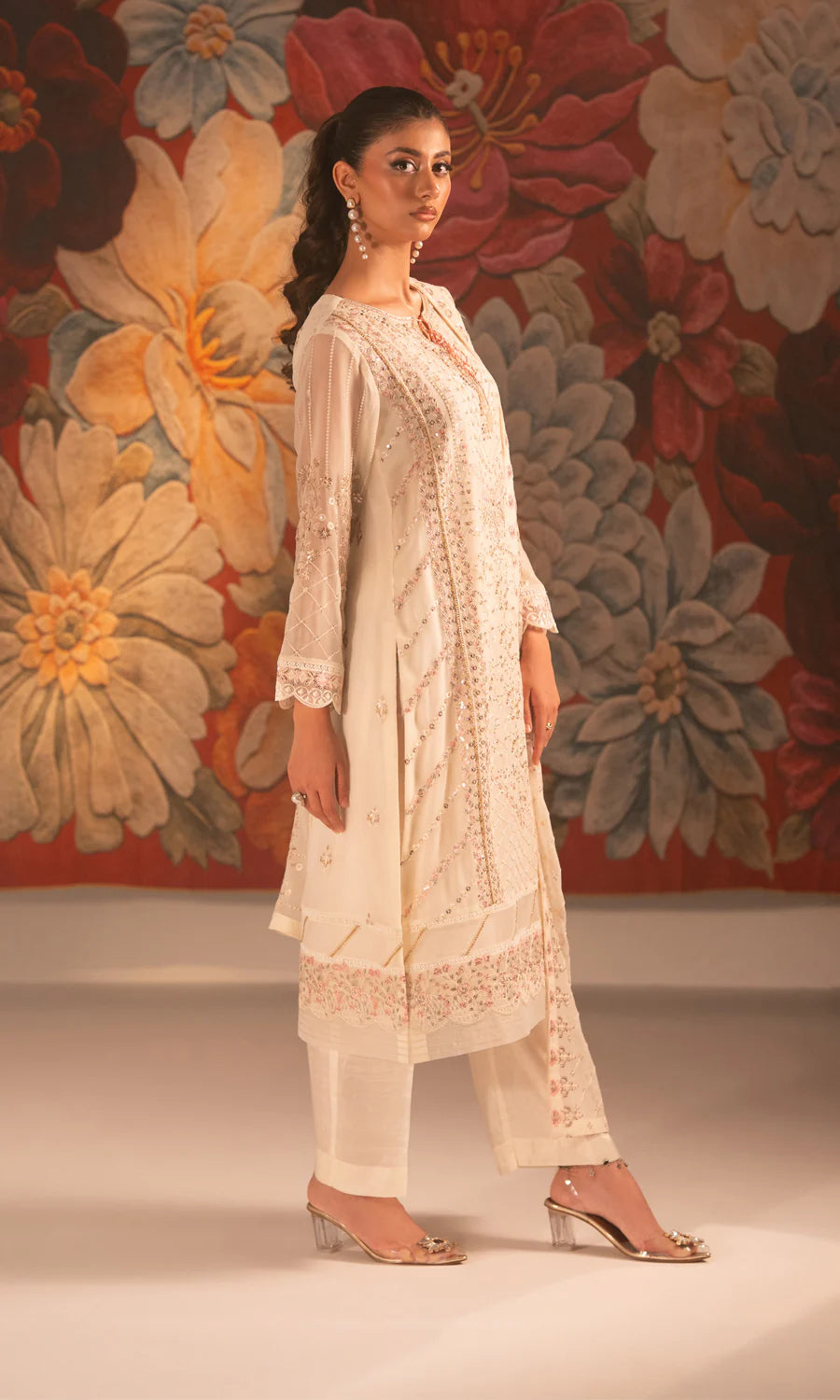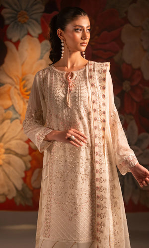 Ecru SU-131 Embroidered Chiffon Unstitched 4Pcs