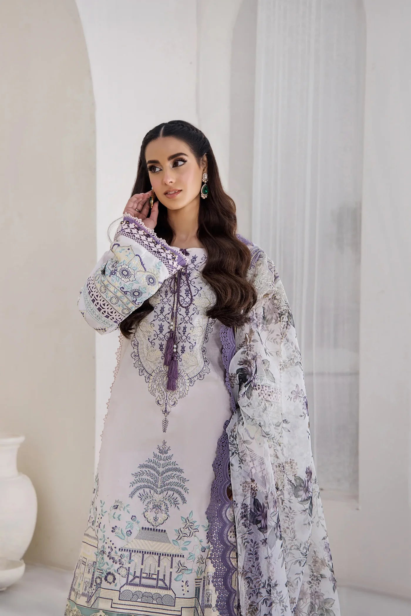 • 2.9 yard organza printed & embroidered dupatta.