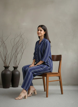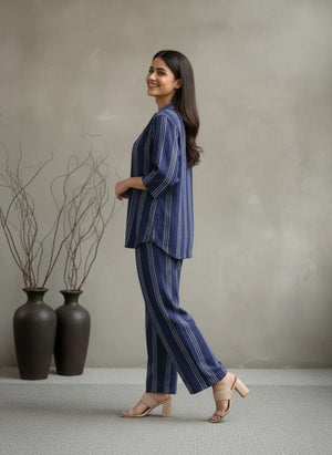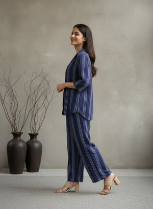 EV05D04-Blue Striped Co Ord Set