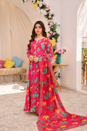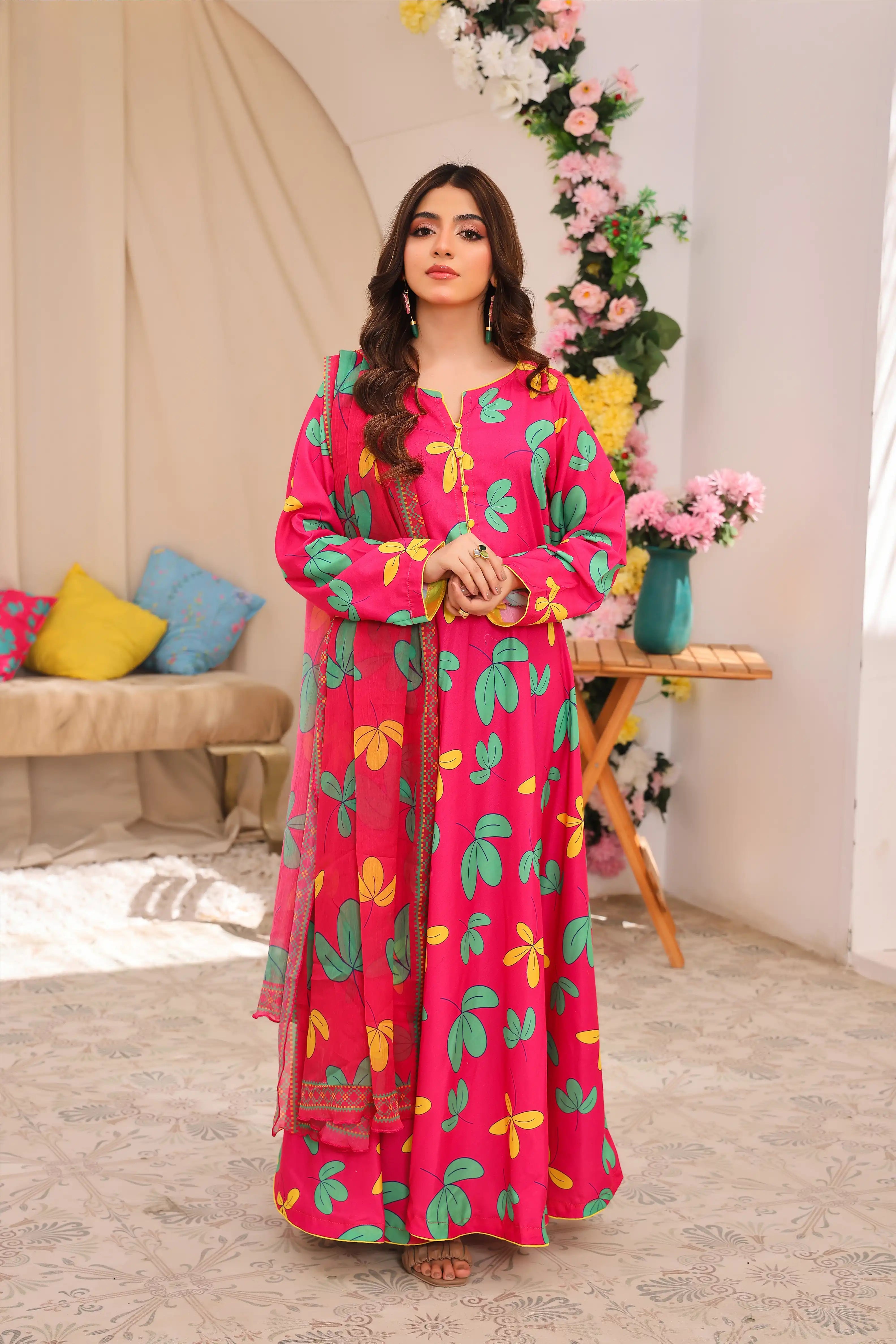 Presenting Evanescent Swiss Lawn with a pink base, overall floral print,and a soft silk dupatta with similar floral print borders. Perfect for a sophisticated and elegant look!