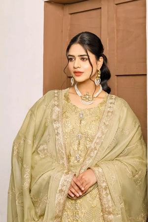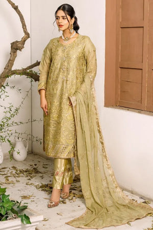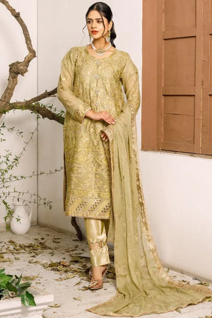 - Embroidered Sequins Chiffon Front with Golden Tilla WorkEmbroidered Chiffon Back with Tilla work and Patch
