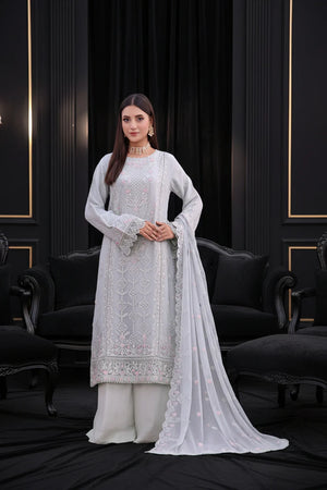 - Stitched 3-piece luxury embroidered chiffon outfit
