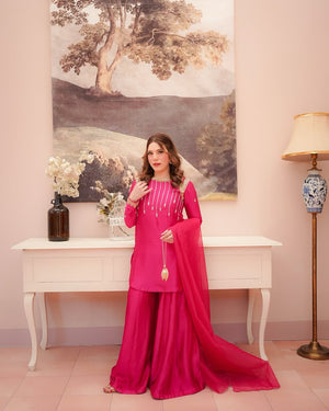 Fuchsia Rose Embroidered Tissue Silk Pret 2Pcs