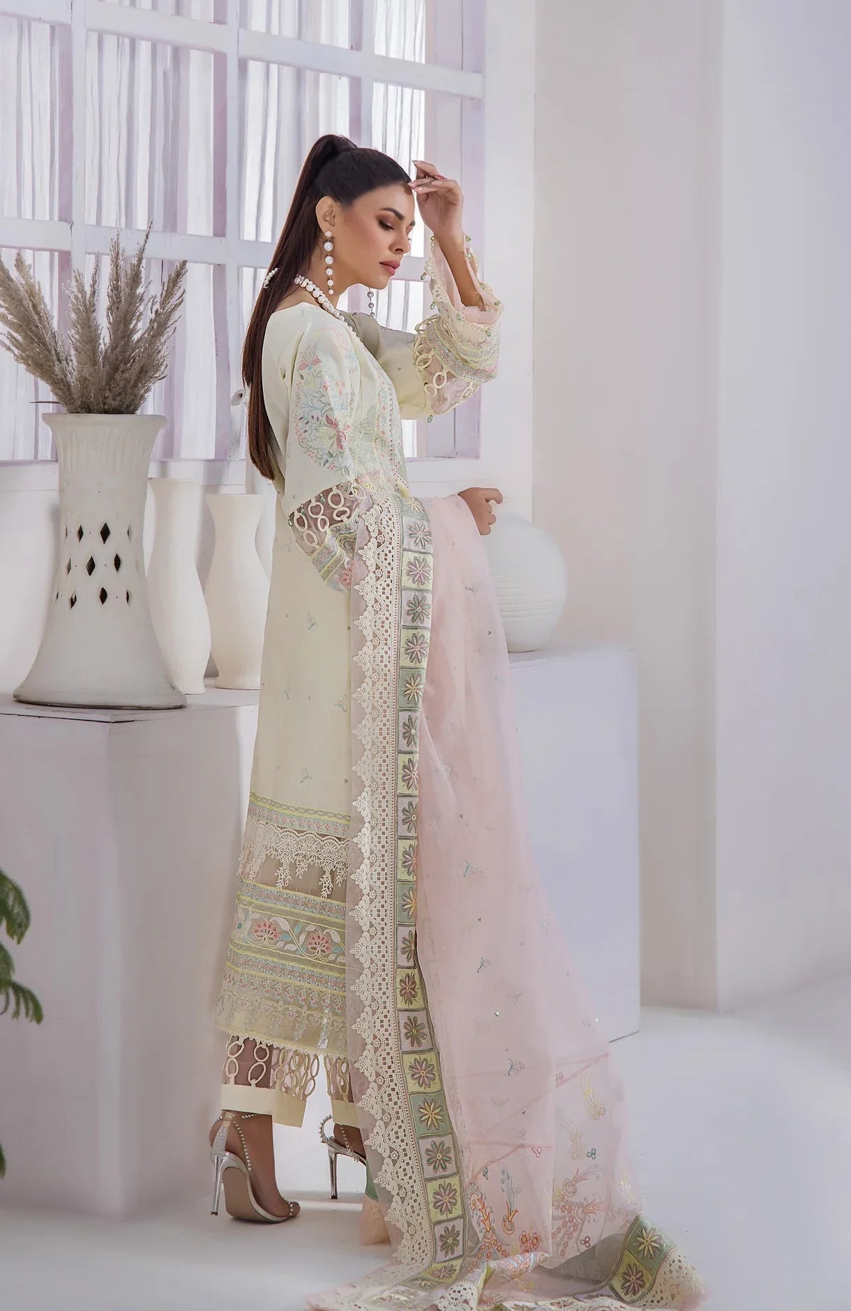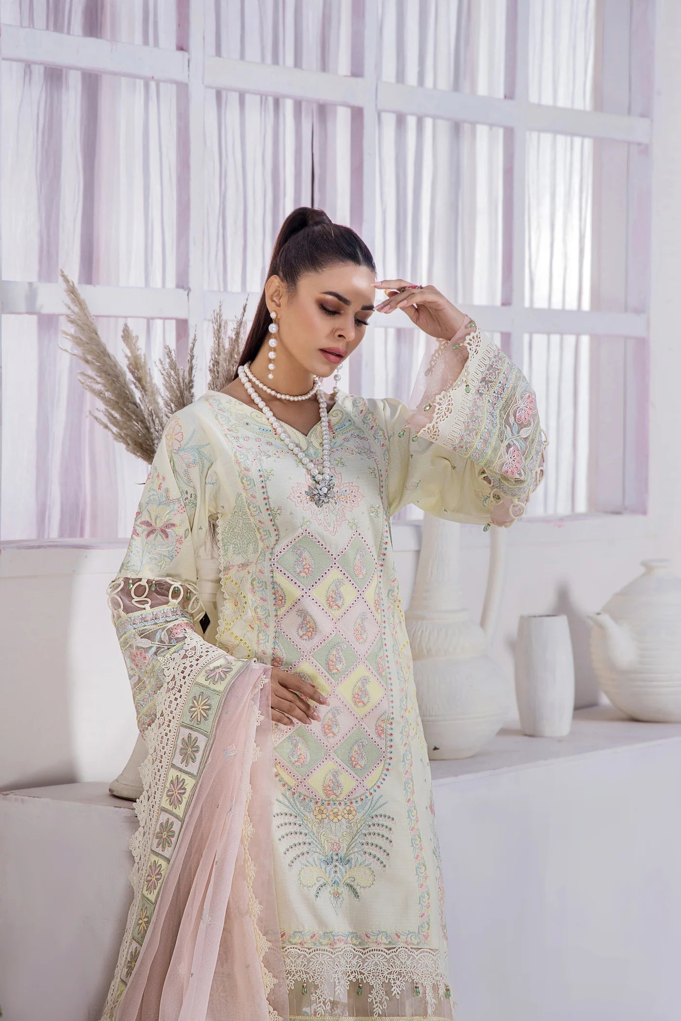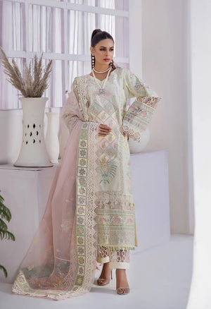 - Immerse yourself in the elegance of the desert with “Gardenia Grace”. This unstitched fabric embodies the essence of desert serenity. Inspired by the delicate beauty of desert flora, its intricate motifs bloom like ethereal gardenias against the backdrop of endless dunes. It’s stunning front center panel embroidered is perfect for creating your own flowy and fashionable attire. This front left right panel embroidered or a front back embroidered border for daman, ideal for women’s clothing, captures the essence of the desert’s delicate beauty. Imagine dupatta embroidered organza flowing silhouettes and intricate designs that come alive in this pristine white canvas. With Gardenia Grace, the desert becomes your muse, and you, the epitome of timeless desert grace.