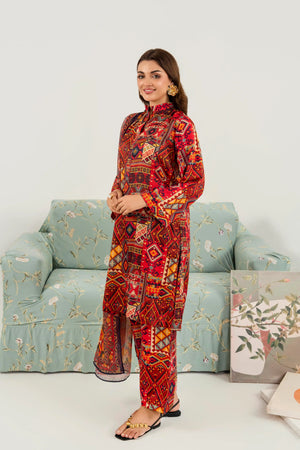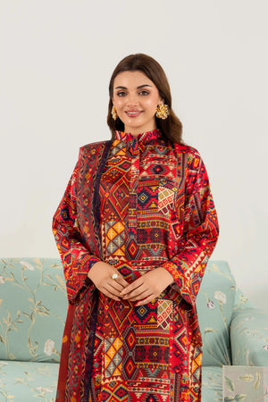 Additional Description: 3-piece blended silk pret featuring digital print, soft drape, and tailored fit for chic everyday style, paired with a poly manar dupatta.