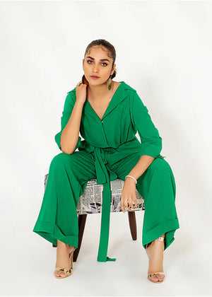 Introducing our best-selling “Glow Green” Jumpsuit, a perfect blend of elegance and versatility. This vibrant green jumpsuit is designed to make a bold statement wherever you go, whether it’s a glamorous evening affair or a chic daytime event. Crafted with meticulous attention to detail, this jumpsuit features a quarter-cut sleeve and a green belt that add a touch of sophistication and glamour.