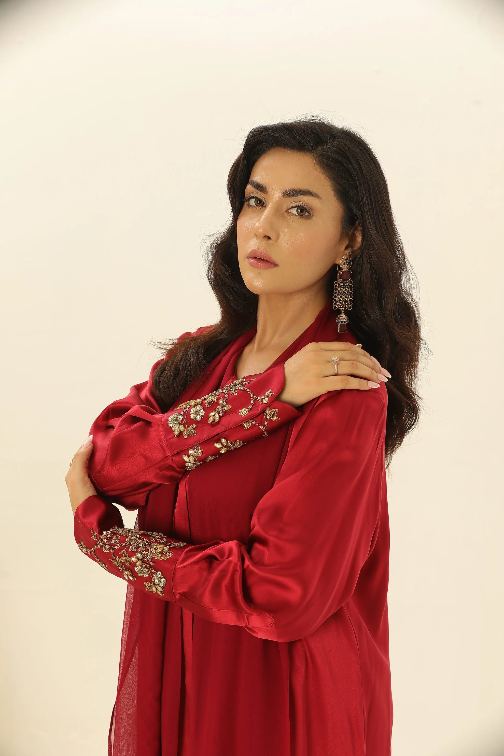 Gul-e-Lala - Red Chiffon Dress 2 PCs